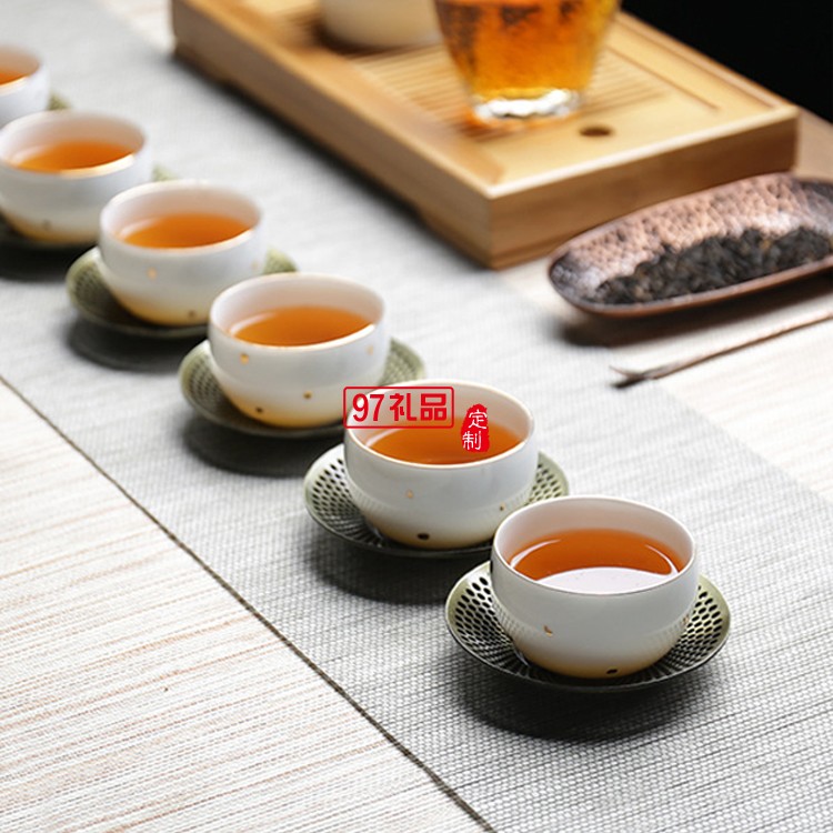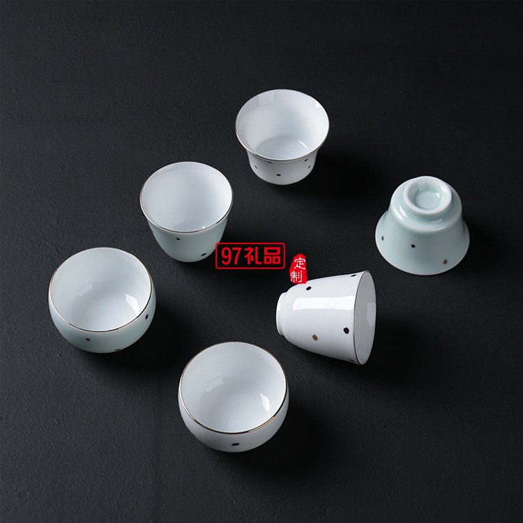 款茶杯陶瓷套裝 大潤窯六個裝品茗杯純色金點杯