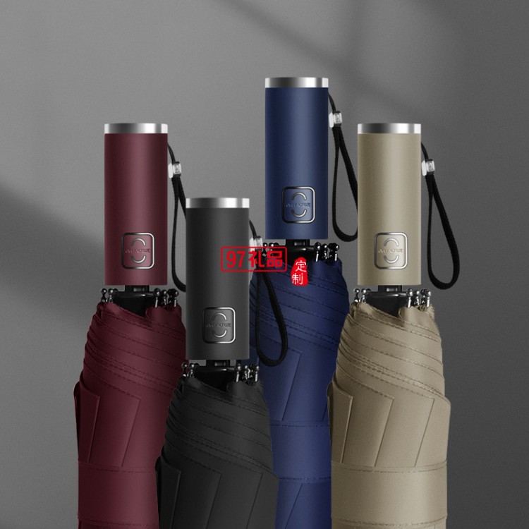 十二骨三折全自動雨傘定制加印logo廣告雨傘商務黑膠遮陽傘