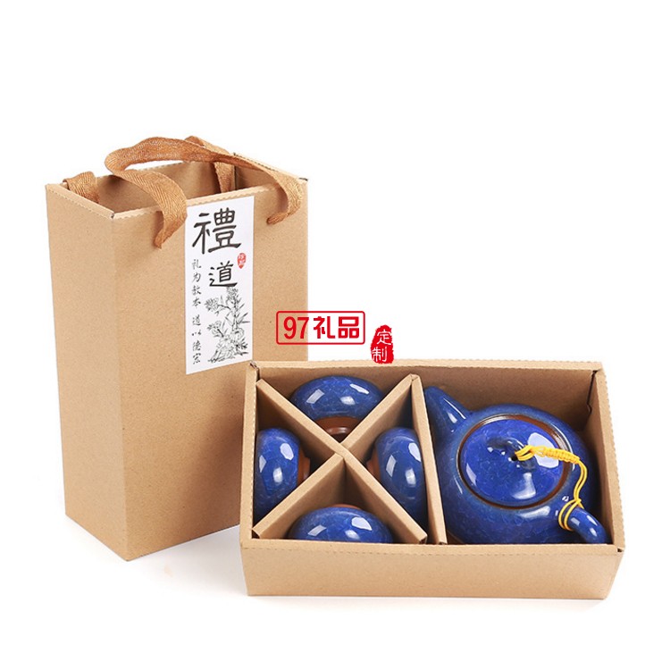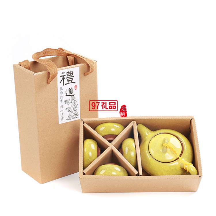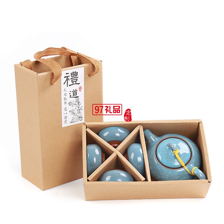 功夫創(chuàng)意禮品 冰裂陶瓷茶壺茶具整套 一壺四杯旅行套裝
