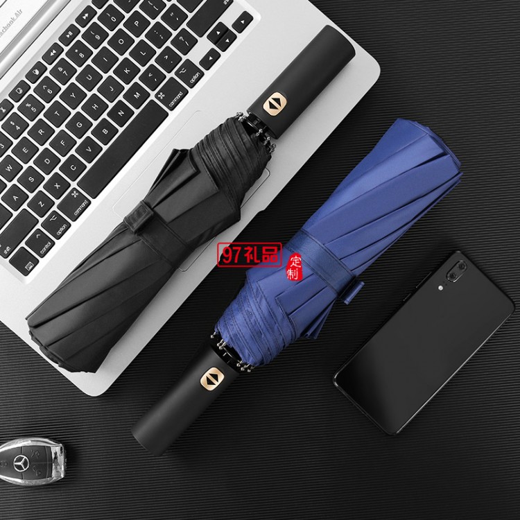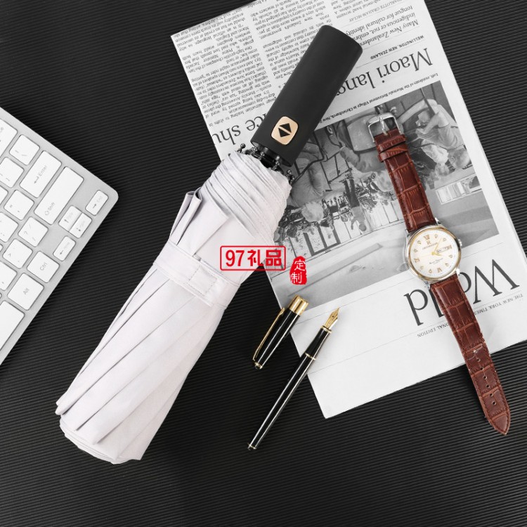 10k黑膠全自動折疊小清新雨傘金柄三折遮陽傘
