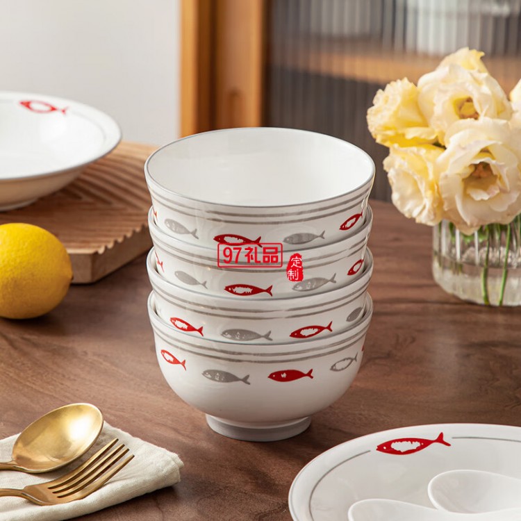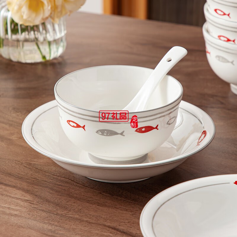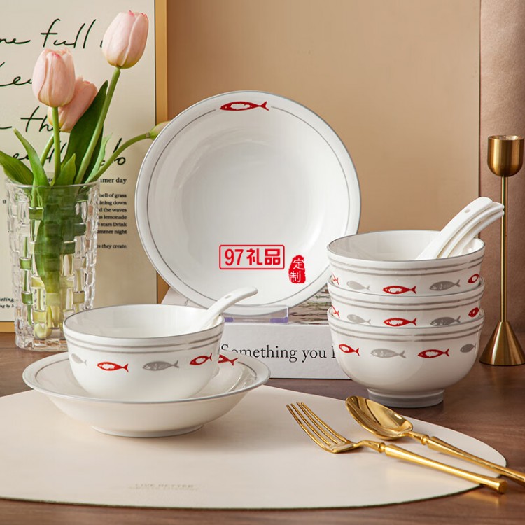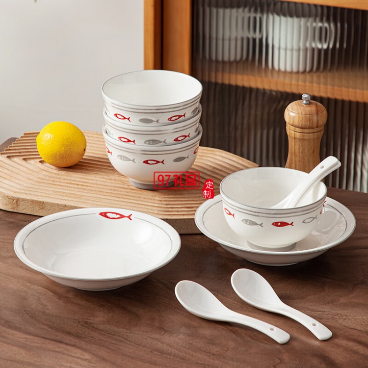 豪愛佳高溫釉下彩餐具套裝魚你一起10件套