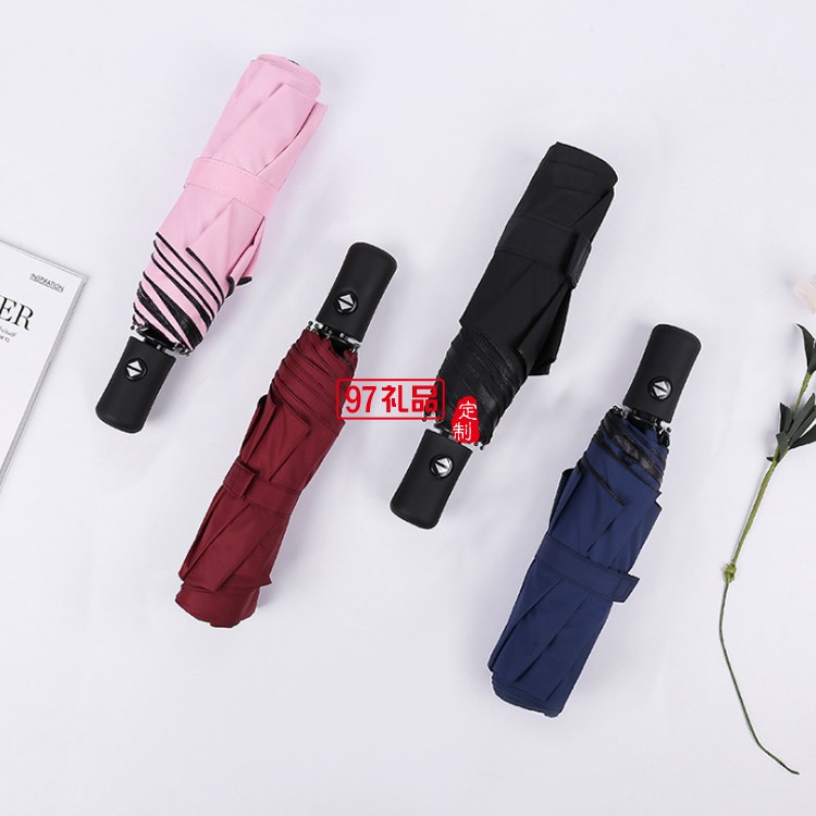 全自動雨傘 黑膠防曬遮太陽晴雨傘男女折疊自動傘 可定制LOGO