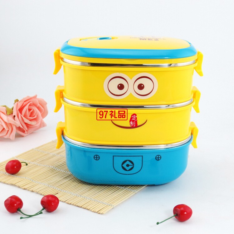【產品材質】:高級無磁不銹鋼/PP食物接觸用塑料 【產品顏色】:小黃人 【產品尺寸】:直徑約19CM,高度約三層19CM、雙層13.5CM、單層8CM 【裝箱數量】:單層48個 雙層36個 三層24個