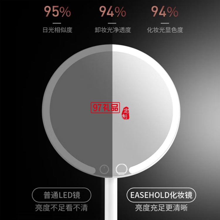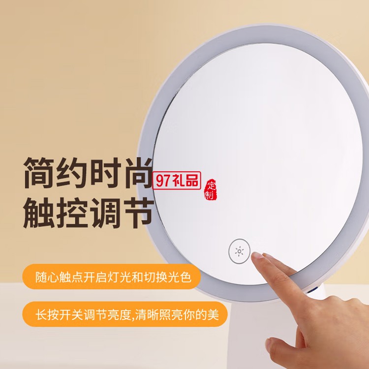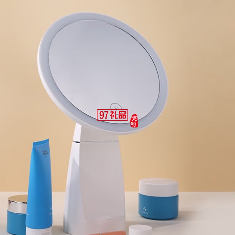 臺(tái)式化妝鏡帶燈 桌面旋轉(zhuǎn)調(diào)光智能補(bǔ)光梳妝鏡,定制公司廣告禮品