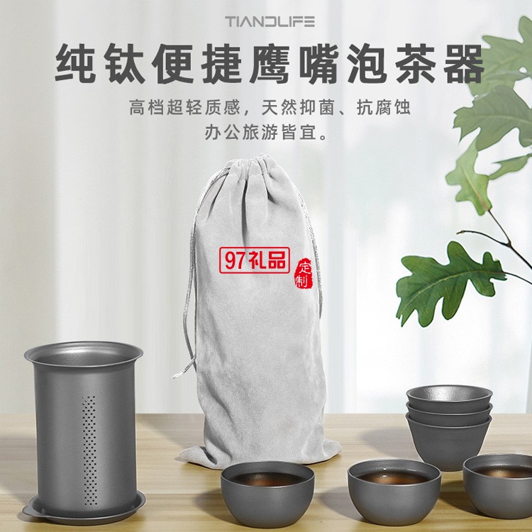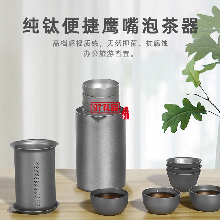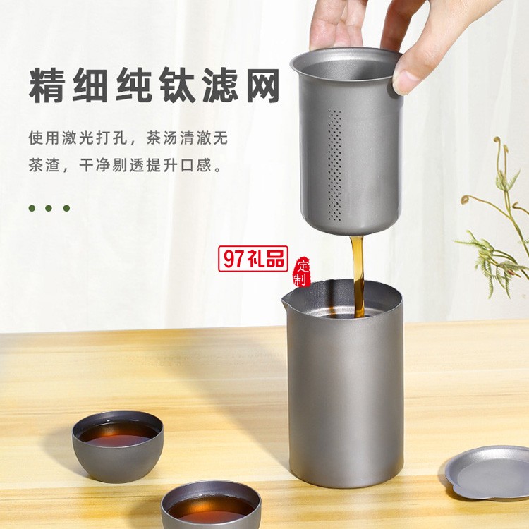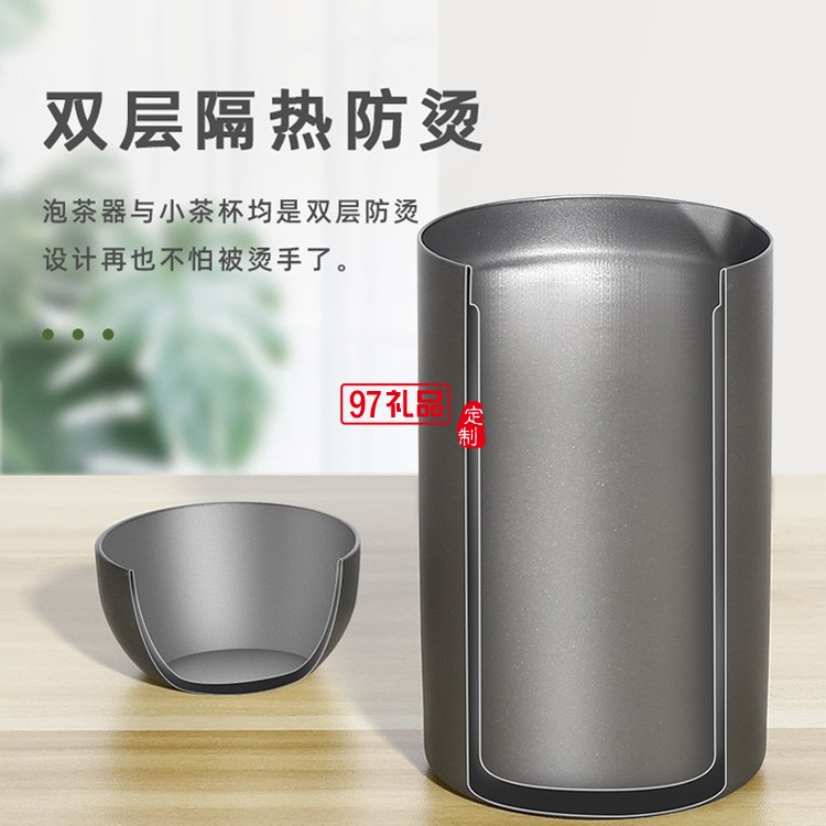 純鈦便攜式泡茶器戶外旅行雙層快客杯多人功夫茶具套裝