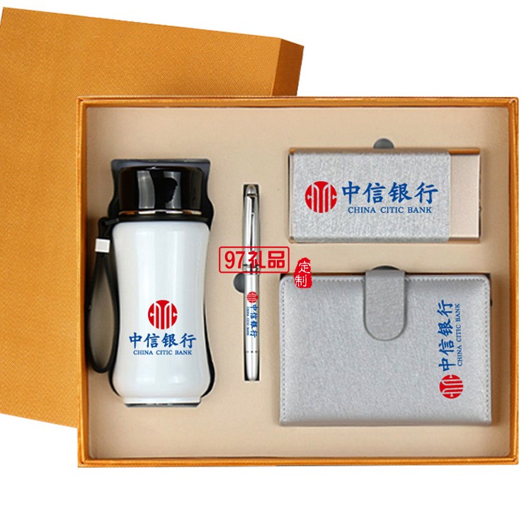 中信銀行定制案例 蠶絲商務(wù)四件套 保溫杯 筆記本 移動(dòng)電源 簽字筆