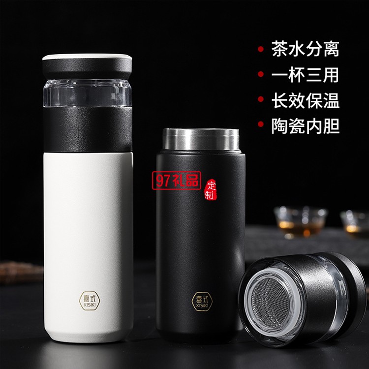 茶水分離水杯不銹鋼陶瓷內(nèi)膽保溫杯KS21-WT925定制公司廣告禮品