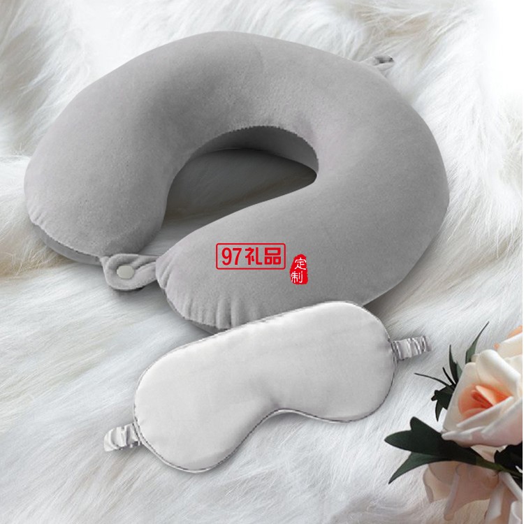 約克羅蘭水晶絨頸枕眼罩組合 辦公護頸U型枕 套裝定制公司廣告禮品
