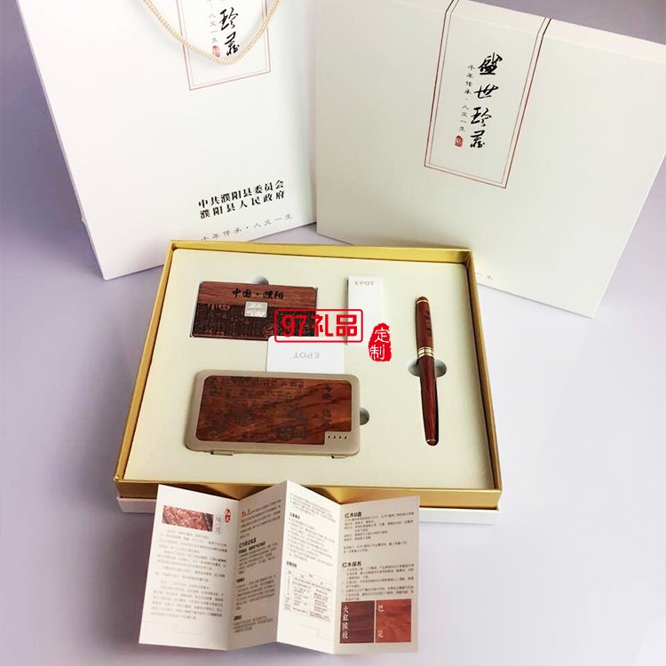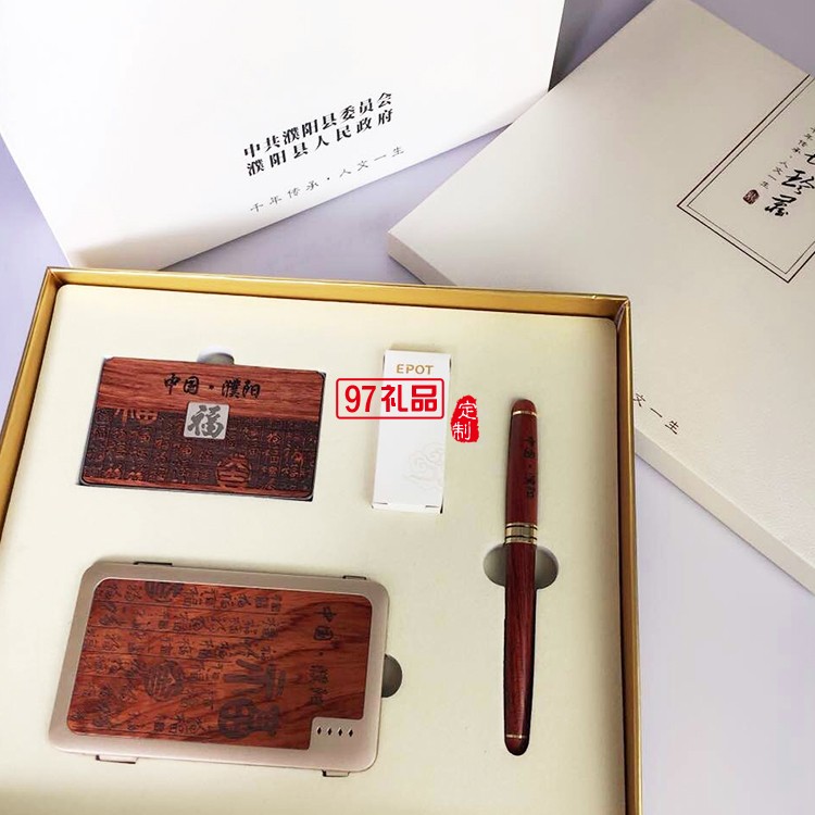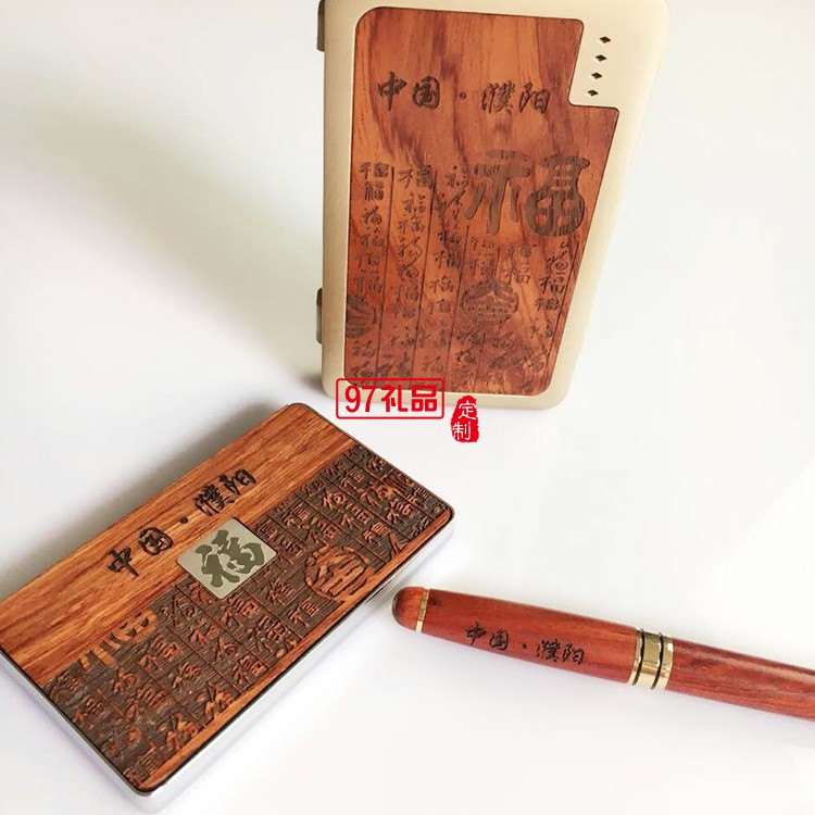 紅木套裝 三件套 名片盒+筆+移動電源