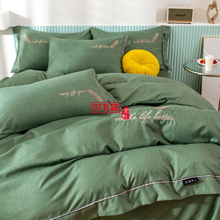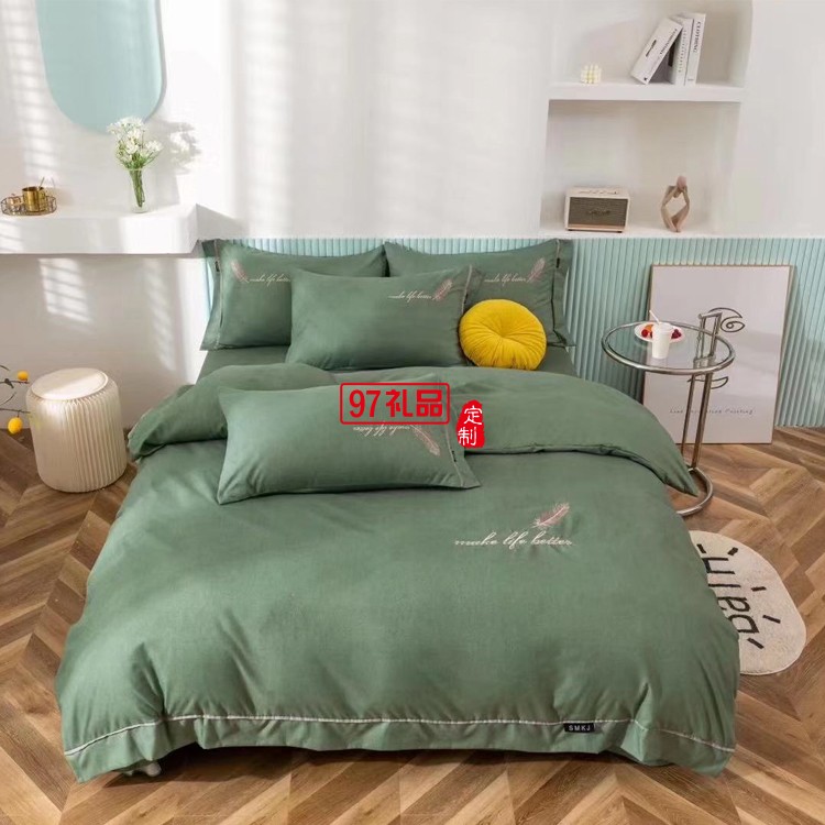 約克羅蘭YEKEROLAN 陽絨棉刺繡四件套被套枕套定制公司廣告禮品