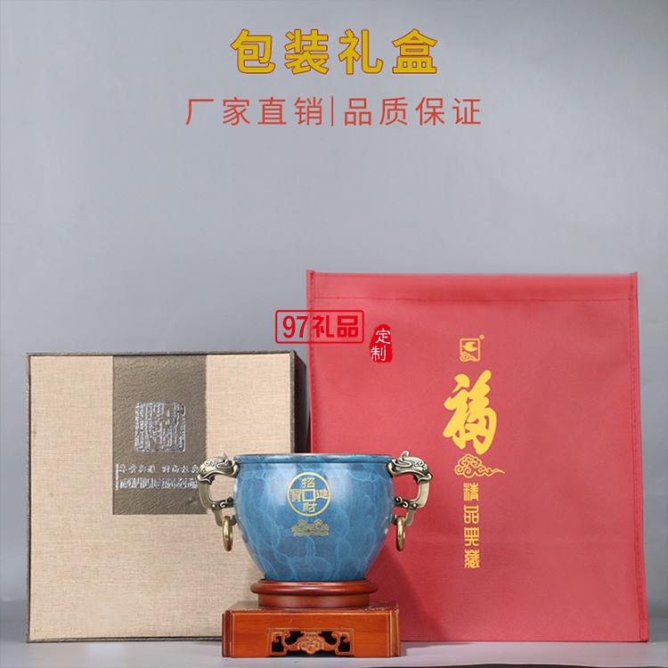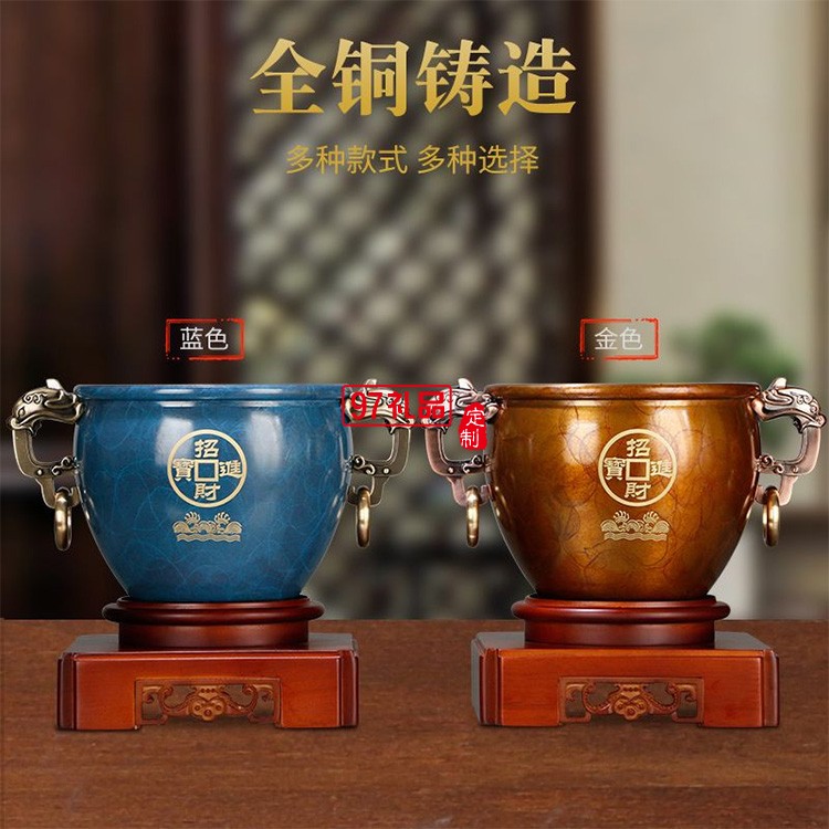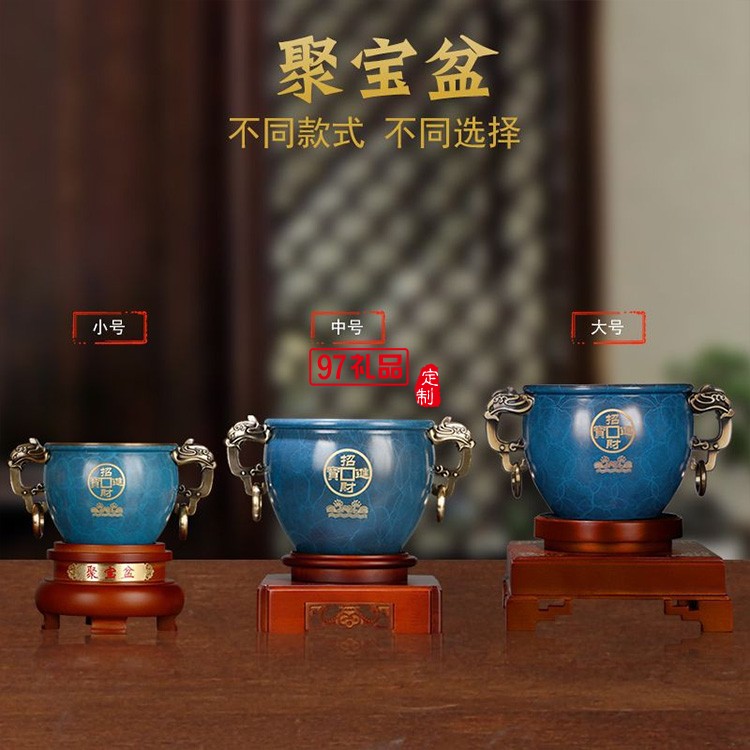 聚財純銅聚寶盆招財擺件商務 辦公室創意禮品黃銅金屬工藝品