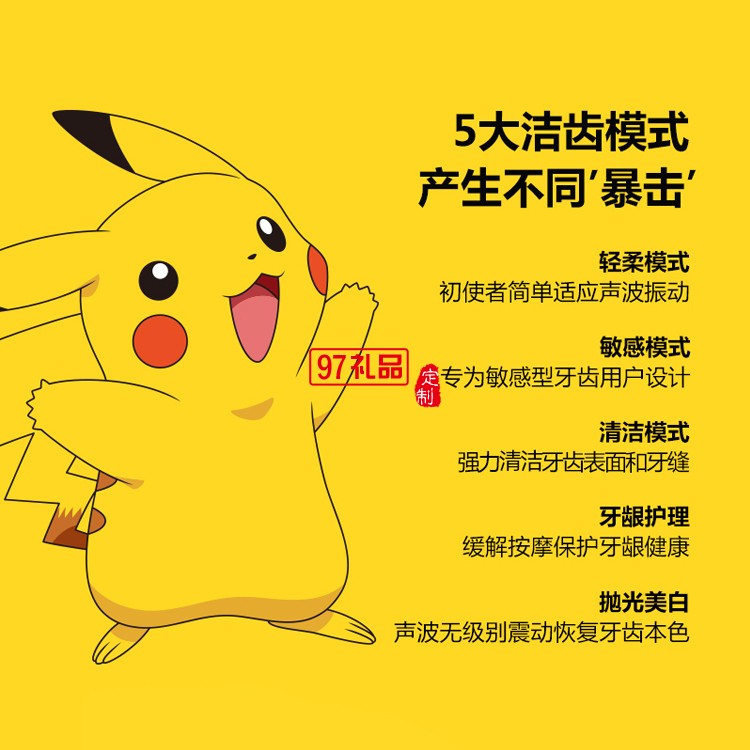 艾優皮卡丘聯名成人款座充聲波充電式電動牙刷定制公司廣告禮品