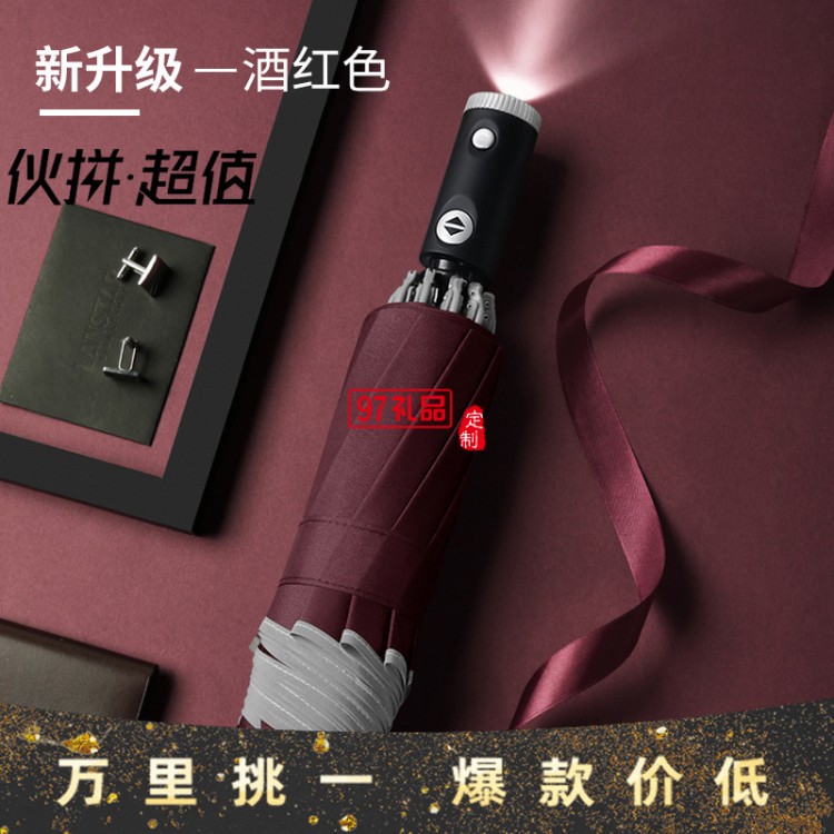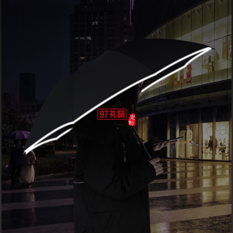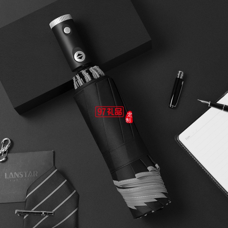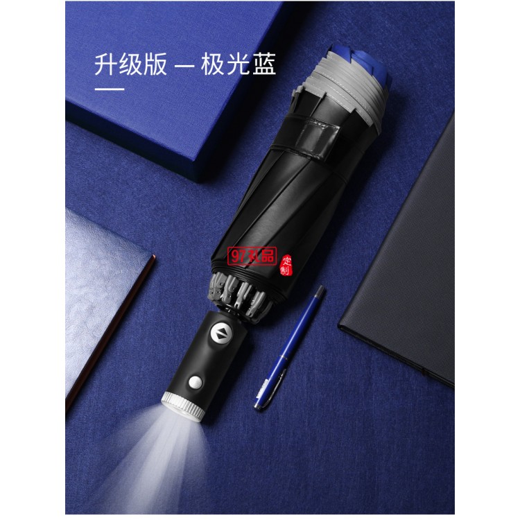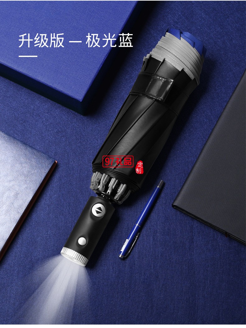 創(chuàng)意10骨全自動(dòng)led傘手電筒反向傘包邊反光商務(wù)雨傘定制