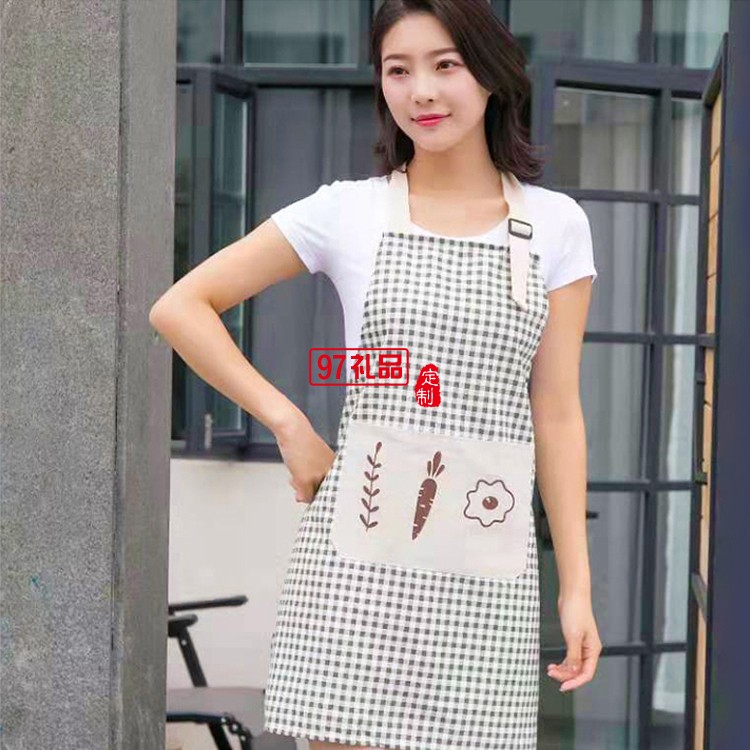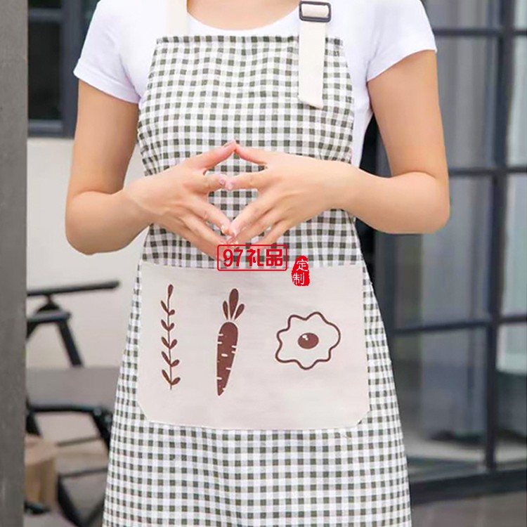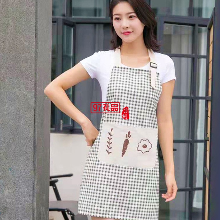 棉麻時尚圍裙餐廳廚房圍裙清潔工作服透氣耐用定制公司廣告禮品