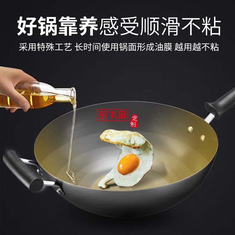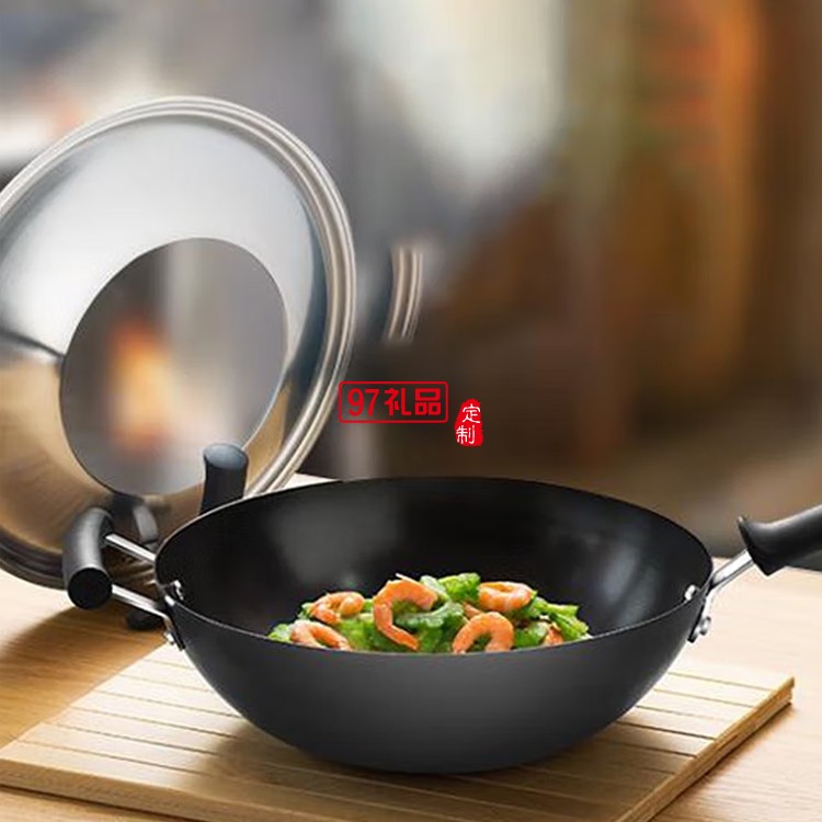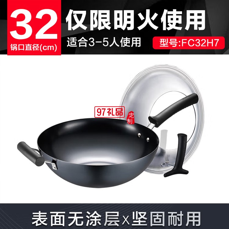 蘇泊爾無涂層真不銹精鐵炒鍋燃?xì)獬床隋丗C32H7定制公司廣告禮品