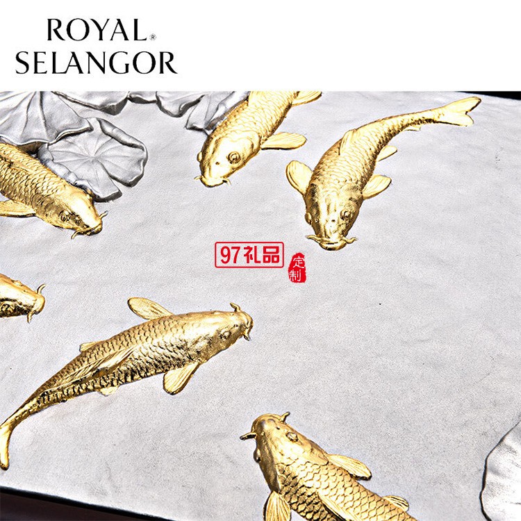商場(chǎng)同款錫器錦鯉牌匾工藝品家居辦公室裝飾品擺件客廳背景