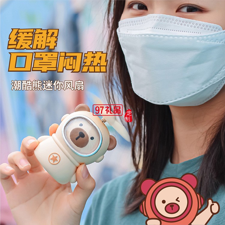 潮酷熊手持小風(fēng)扇USB充電便攜式