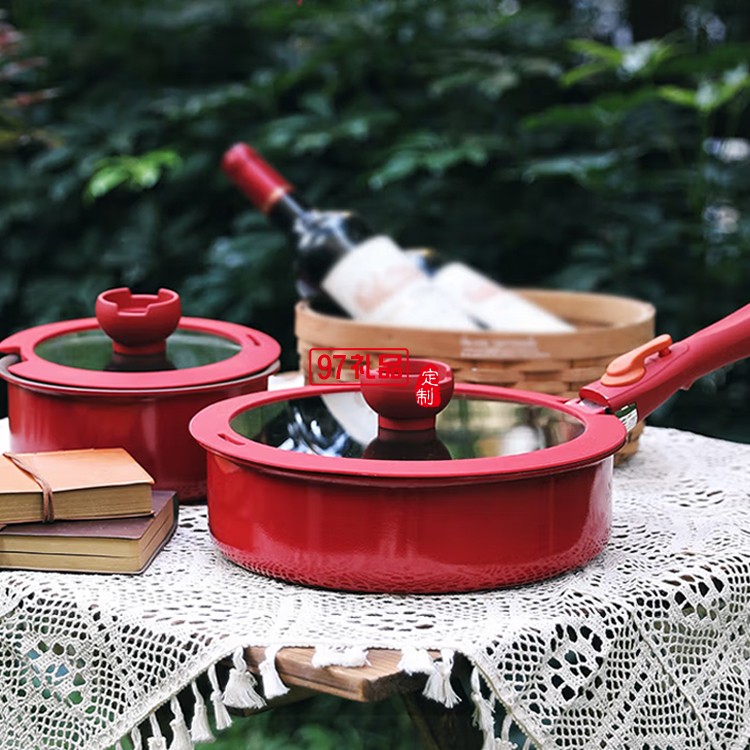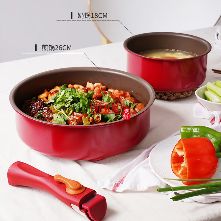 粘鍋煎炒鍋奶鍋套裝小紅鍋可拆卸手柄T212定制公司廣告禮品