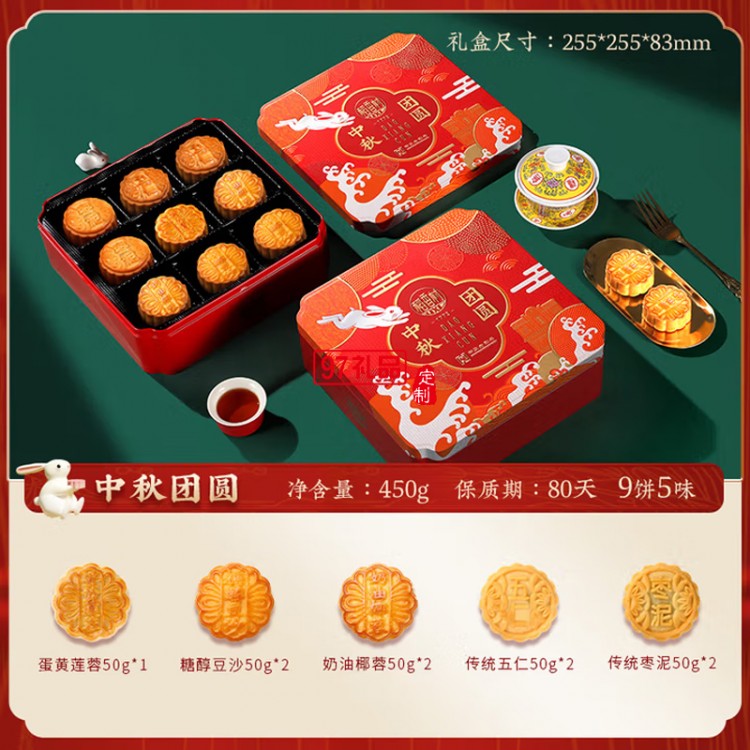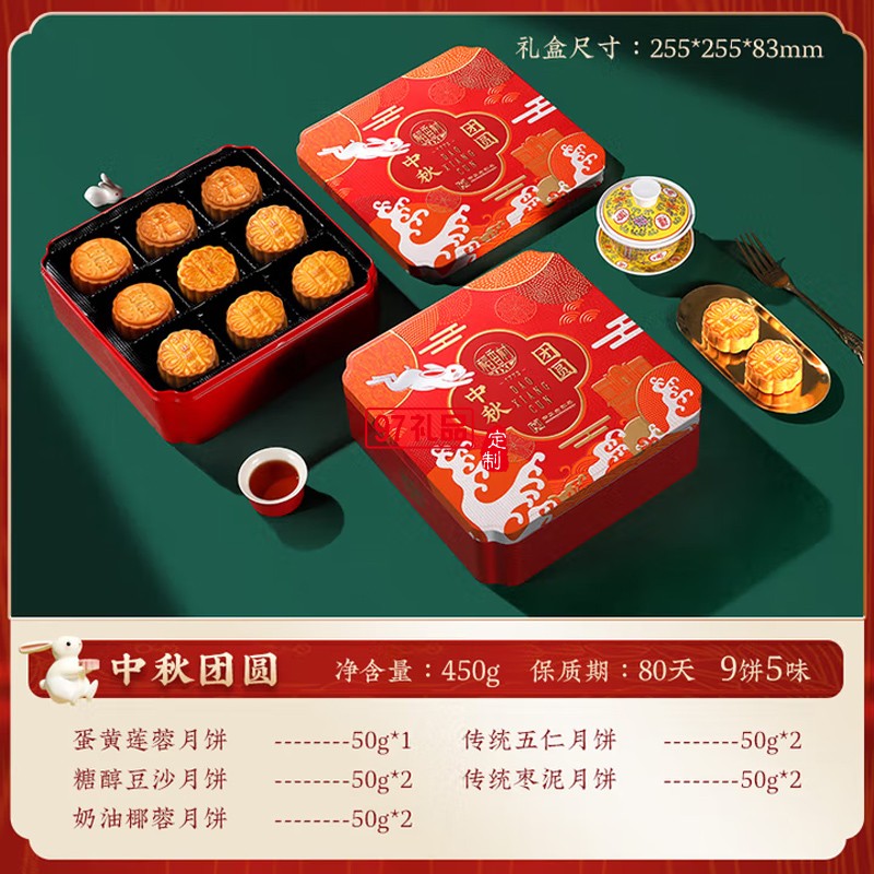 中秋節商務送禮團購福利 稻香村中秋團圓450g【鐵盒9餅5味】