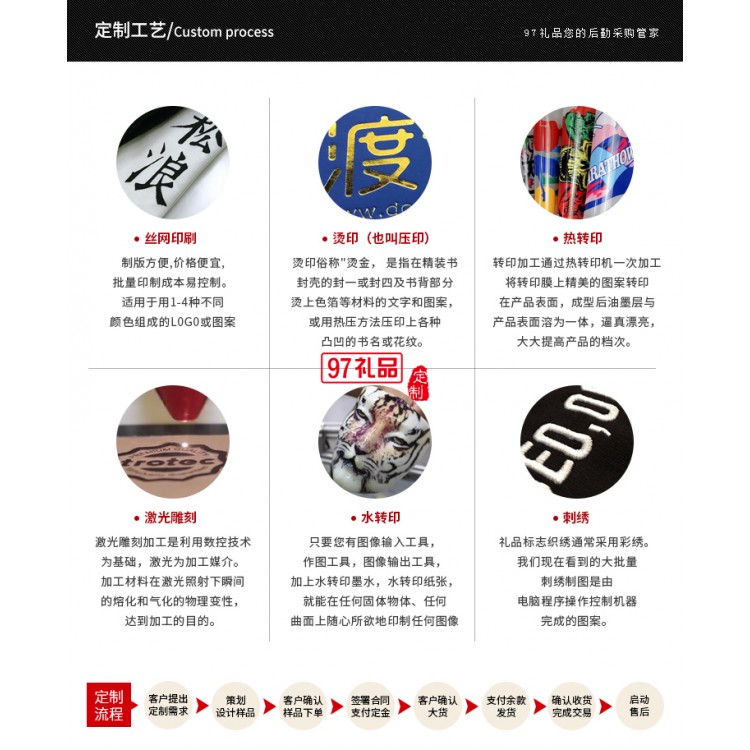 適用范圍:廣告促銷 商務活動、廣告派發、慶典開業、回饋客戶 定制流程:選中商品提出定制需求,免費策劃設計,確認樣品下單, 簽署合同支付定金,支付余額收貨,售后啟動,免費熱線:400-0197-908