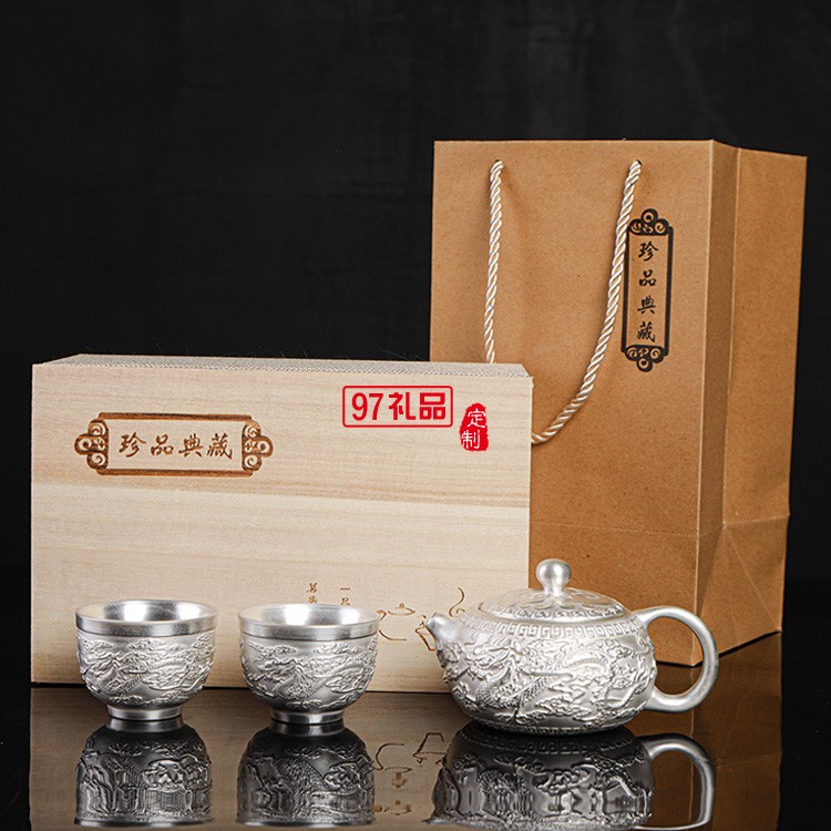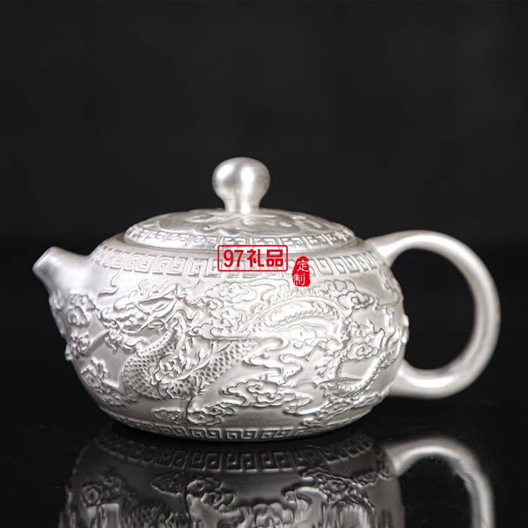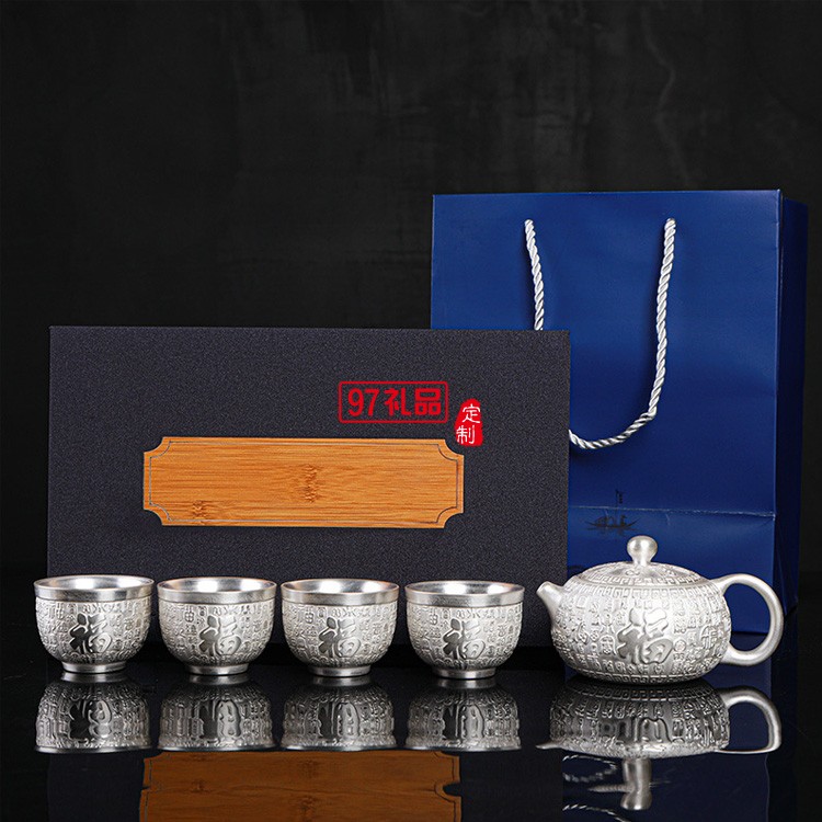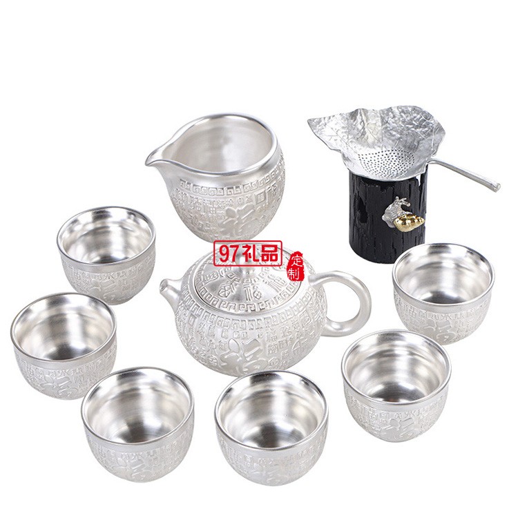 999鎏純銀功夫茶具套裝 家用簡約百福陶瓷茶壺蓋茶杯自動銀茶具