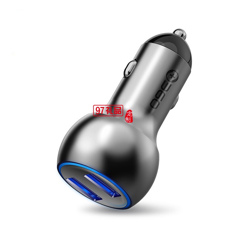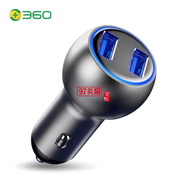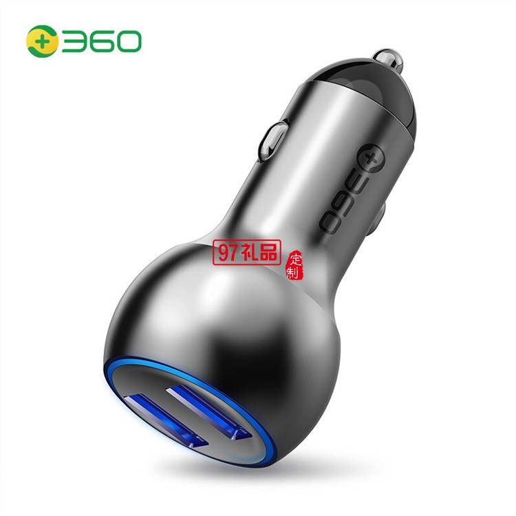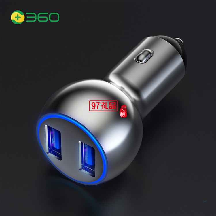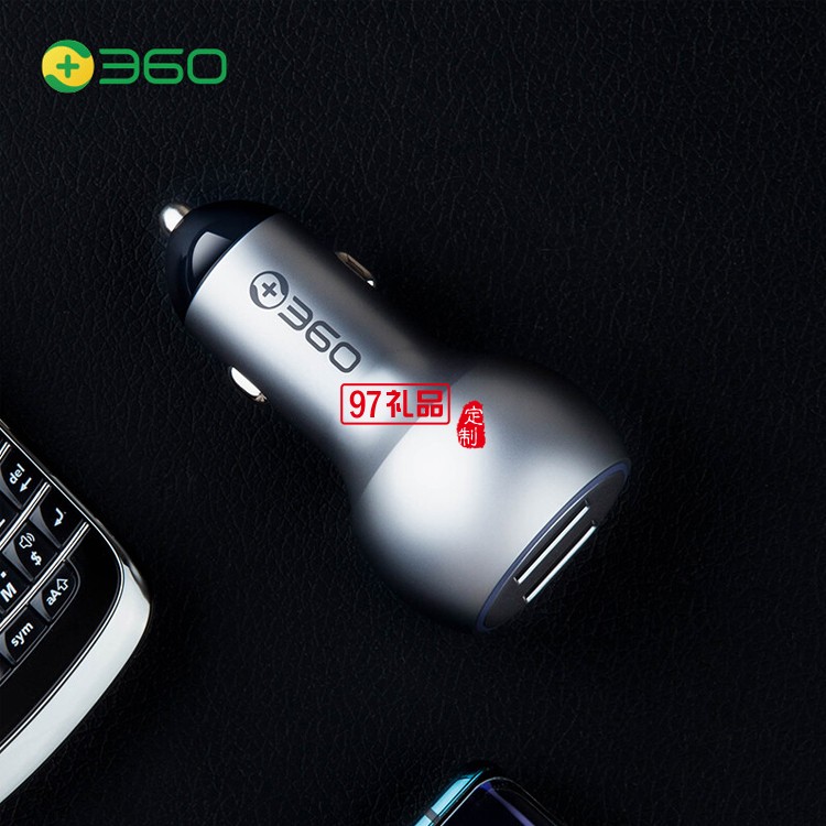 360 車載充電器 C6 車充點煙器一拖二 銀色快充定制公司廣告禮品