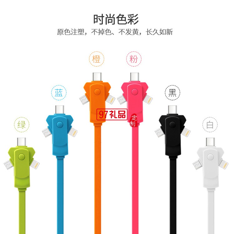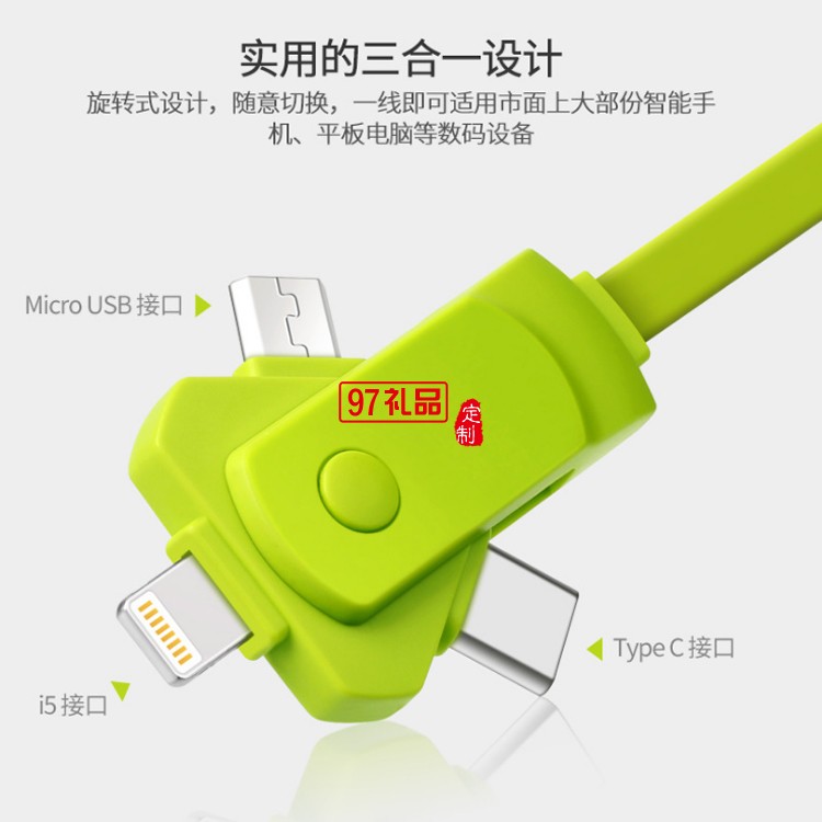 旋轉數據線 多功能充電線 iphone三合一手機數據線 齊魯制藥定制案