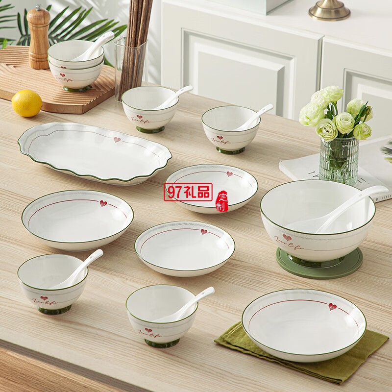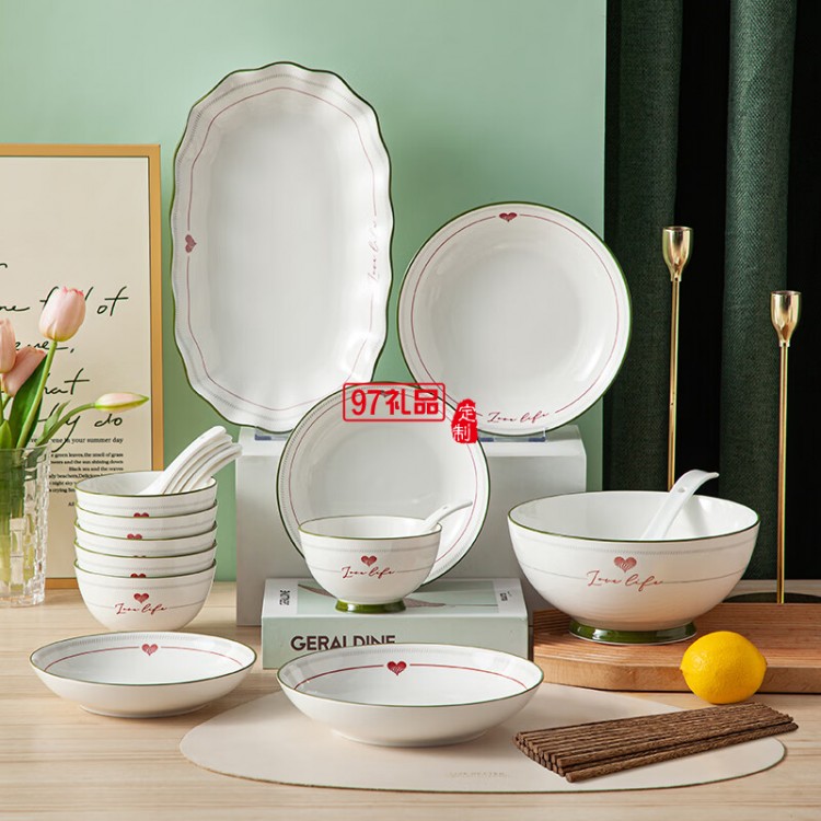 豪愛(ài)佳高溫釉下彩餐具套裝心心相印29件套