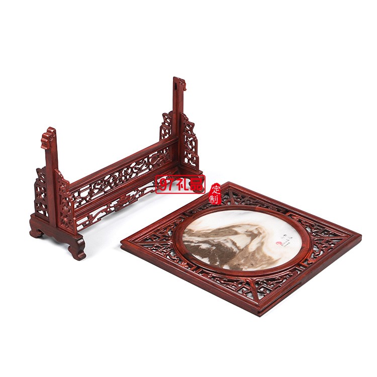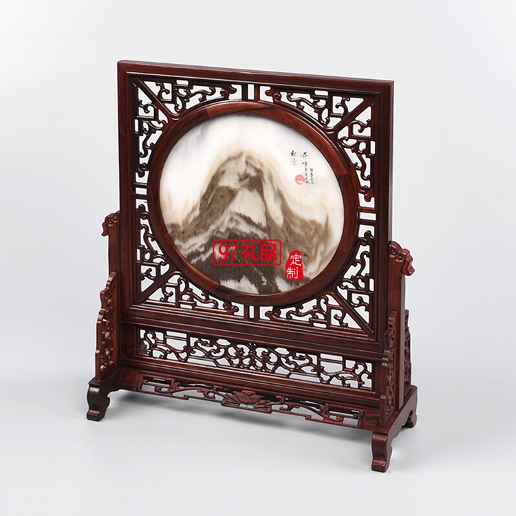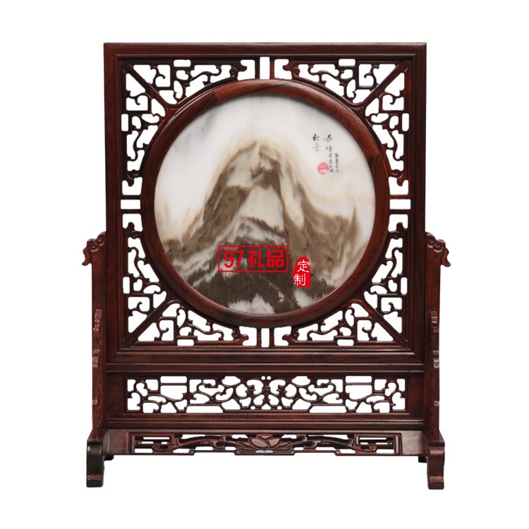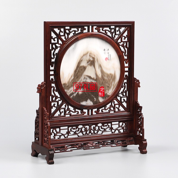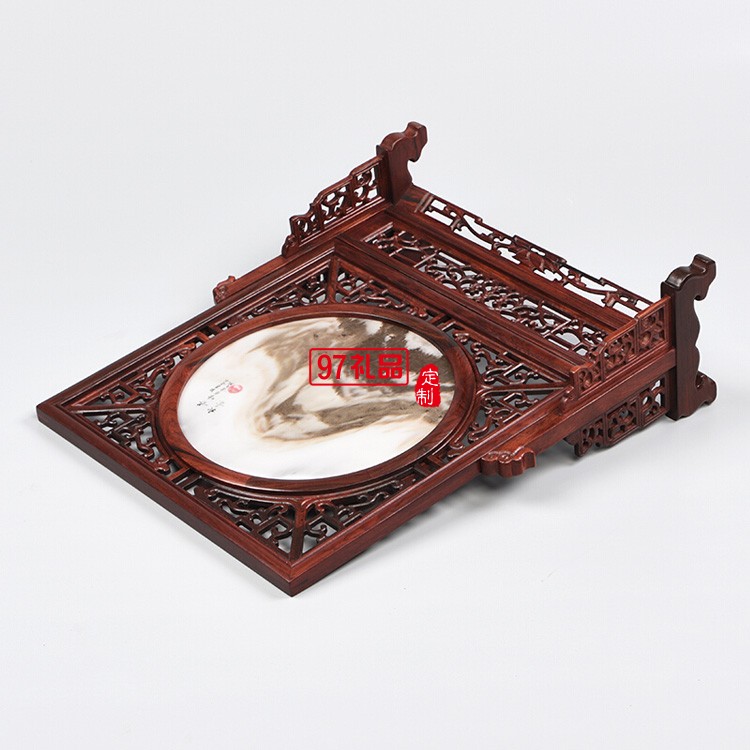 中堂屏風酸枝木桌屏插屏嵌大理石臺屏 紅木雕刻工藝品家居擺件