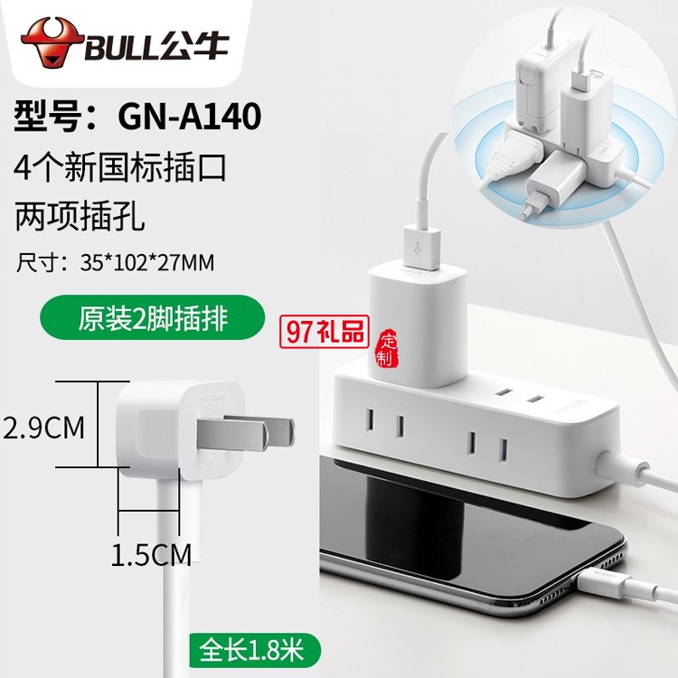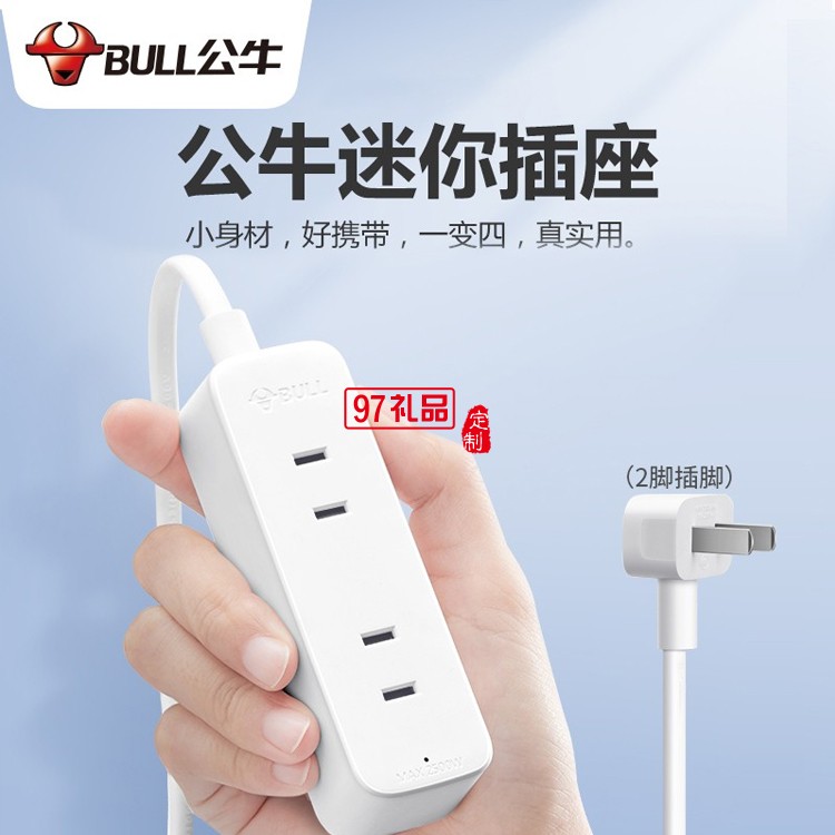 公牛迷你插座新國標插口插排延長線接線板GN-A140定制公司廣告禮品