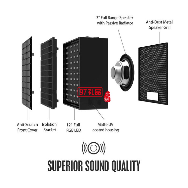 材質:硅膠 連接方式:藍牙 顯示屏:有 使用場景:桌面 功能:鬧鐘 供電方式:內置電池 聲道:2.0聲道