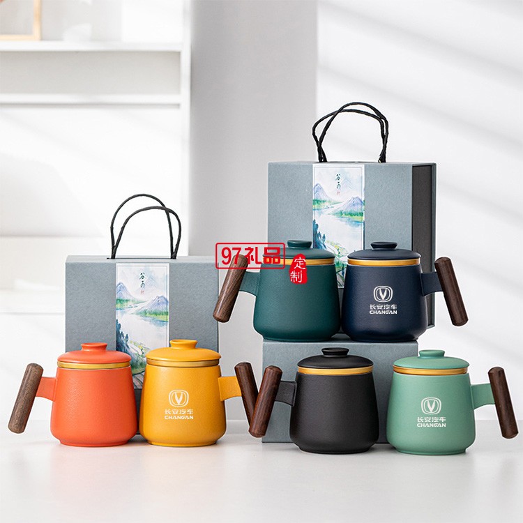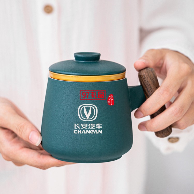 奔馳定制 新款陶瓷馬克杯過濾茶水分離大容量泡茶杯 可定制logo