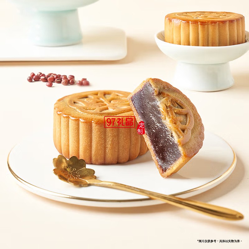 月餅禮盒蛋黃蓮蓉月餅純正紅豆沙月餅中秋團(tuán)購送禮 錦華福祿安康420g