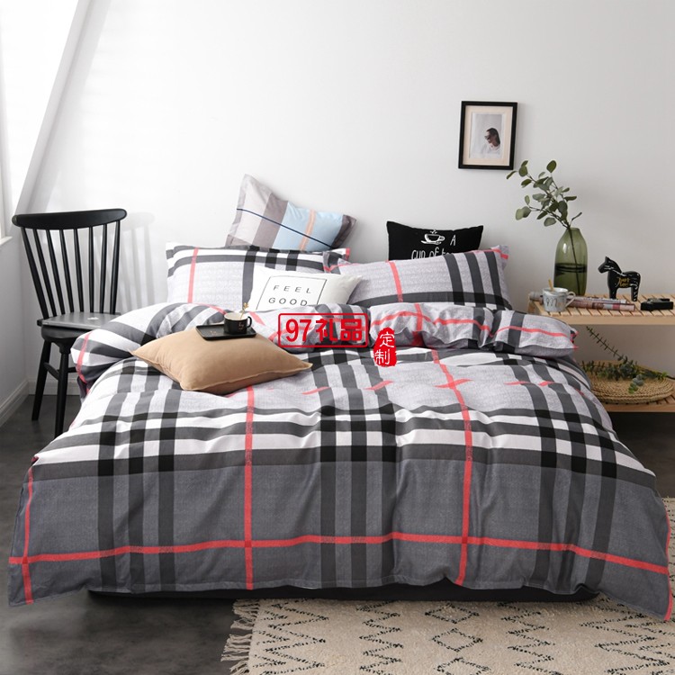 雅鹿 聚酯纖維套件活性長絨棉四件套床單被套枕套定制公司廣告禮品