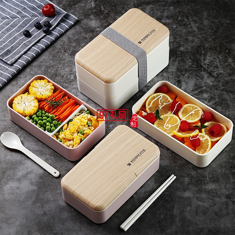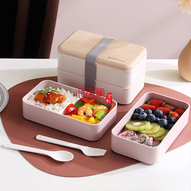 網紅日式雙層飯盒塑料分格便當盒跨境成人學生可微波爐 午餐盒