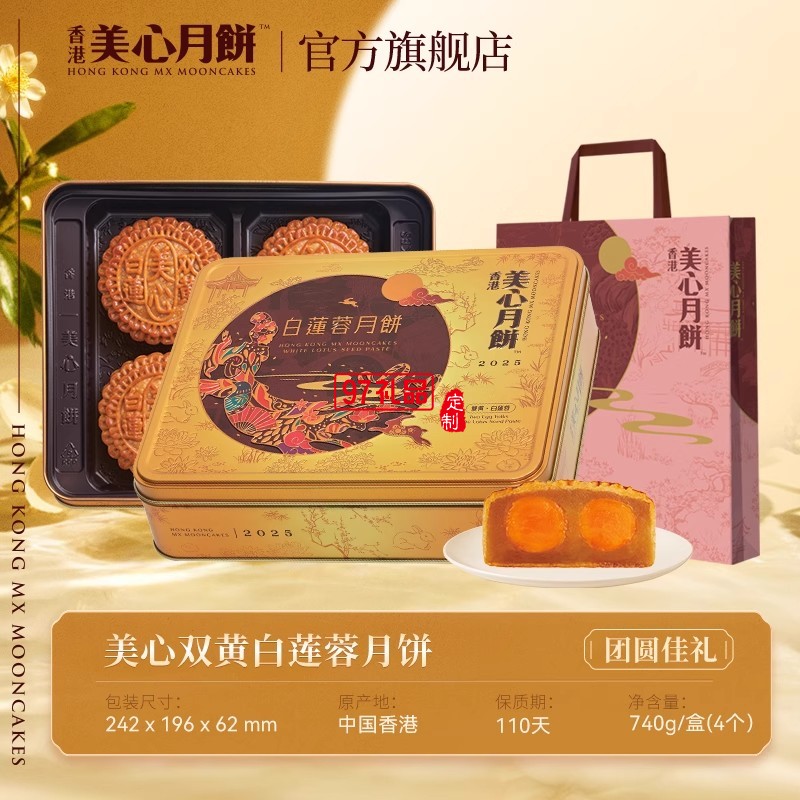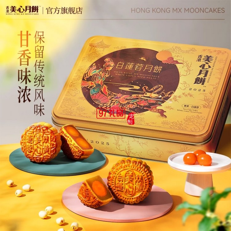 香港美心雙黃白蓮蓉中秋月餅咸蛋黃老式糕點(diǎn)傳統(tǒng)商務(wù)團(tuán)購正品禮盒