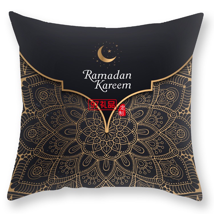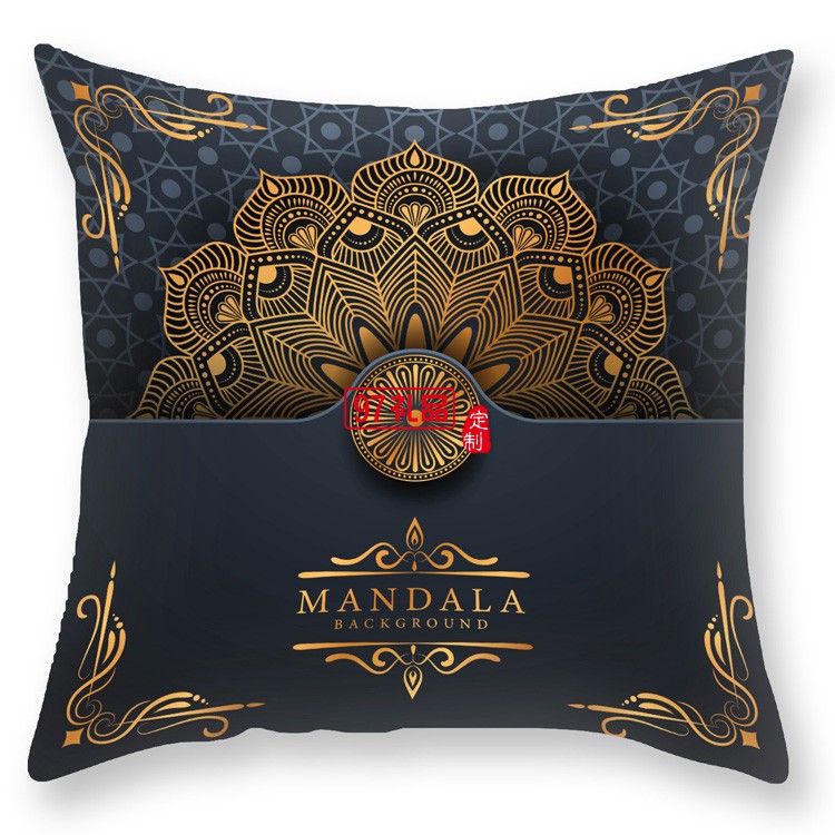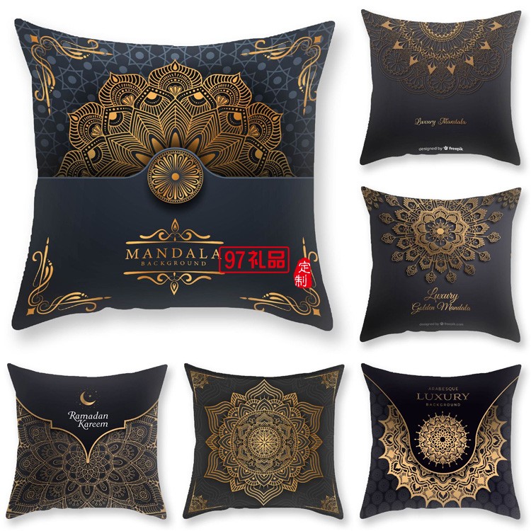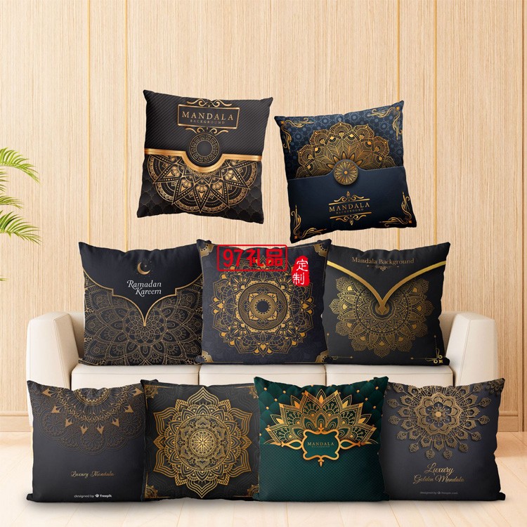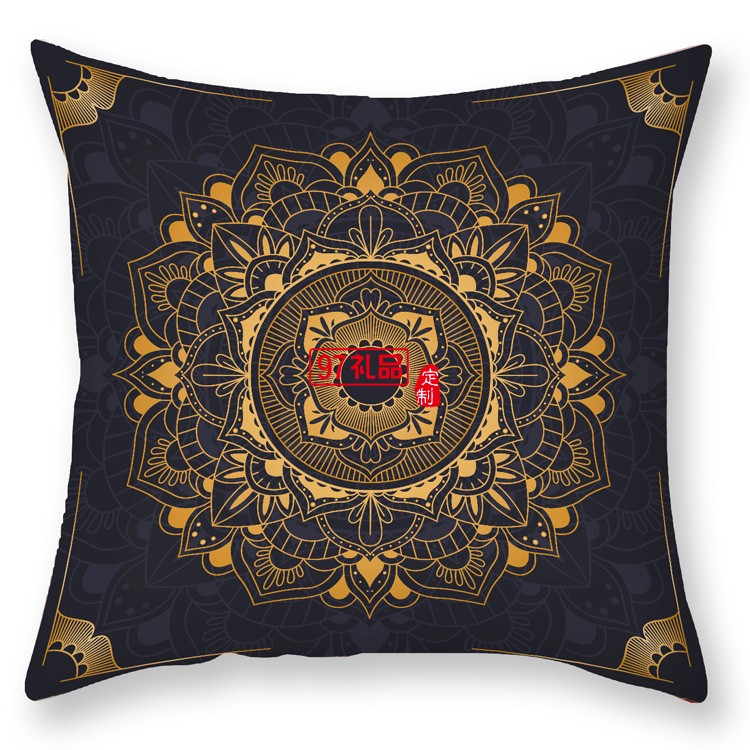 黑金曼陀羅靠枕布藝沙發靠背臥室抱枕套輕奢印花毛絨抱枕