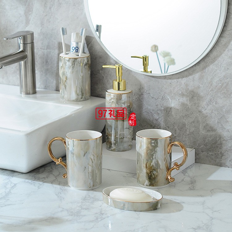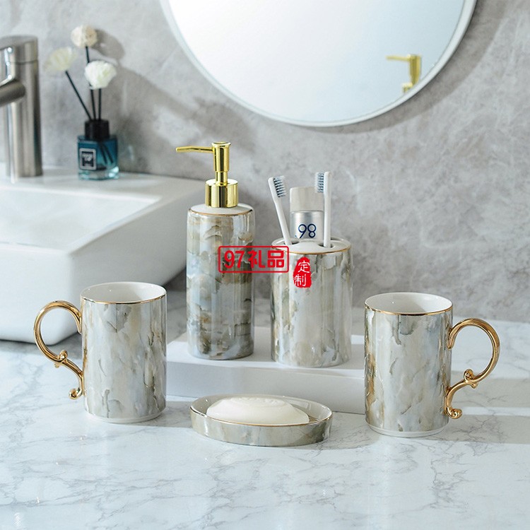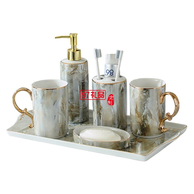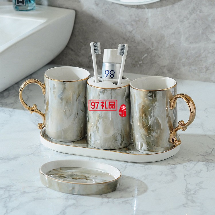 北歐浴室洗漱用品衛浴五件套裝衛生間刷牙漱口杯牙具陶瓷托盤套件