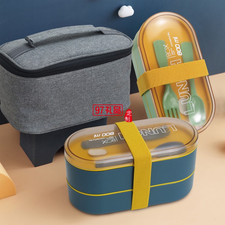 便當盒套裝帶保溫袋叉勺雙層綁帶 保溫飯盒上班族午餐盒
