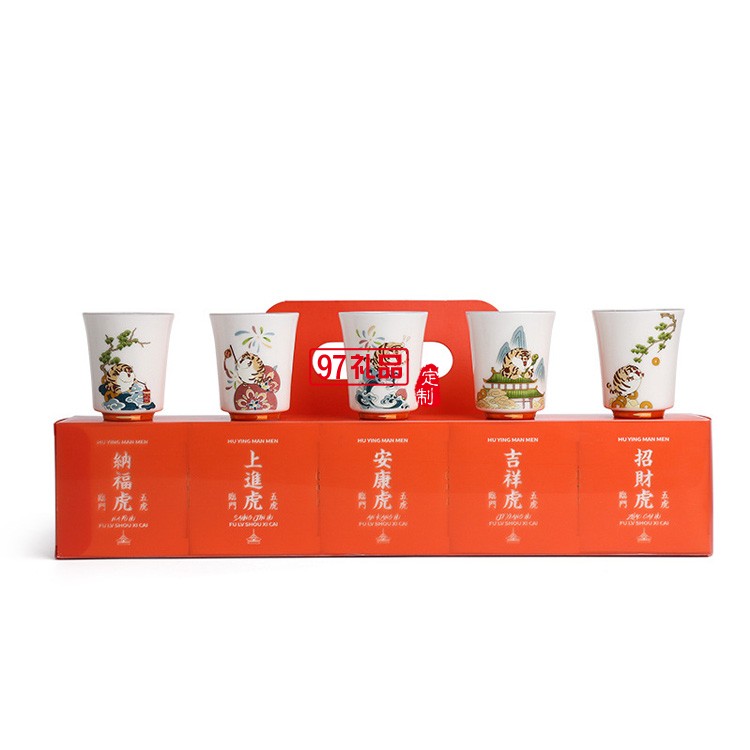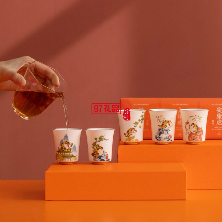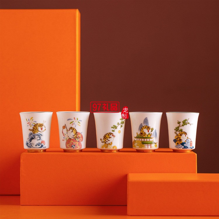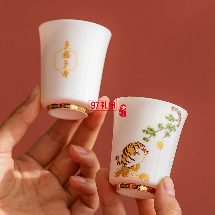 新年茶杯陶瓷品茗主人杯國潮描金禮盒開業禮物虎年伴手禮品