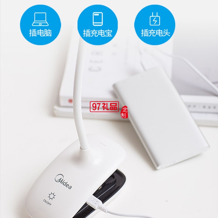 美的小臺(tái)燈護(hù)眼學(xué)習(xí)大學(xué)生宿舍寢室?jiàn)A子式定制公司廣告禮品