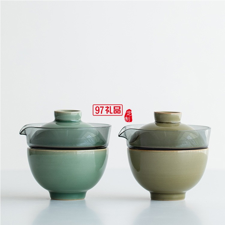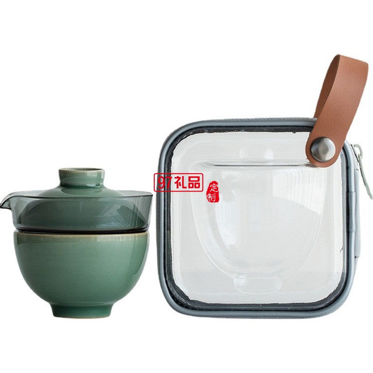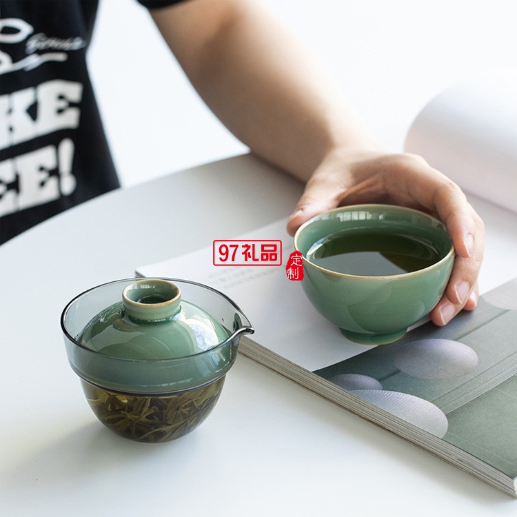 青瓷快客杯玻璃蓋碗一壺一杯旅行茶具套裝茶杯