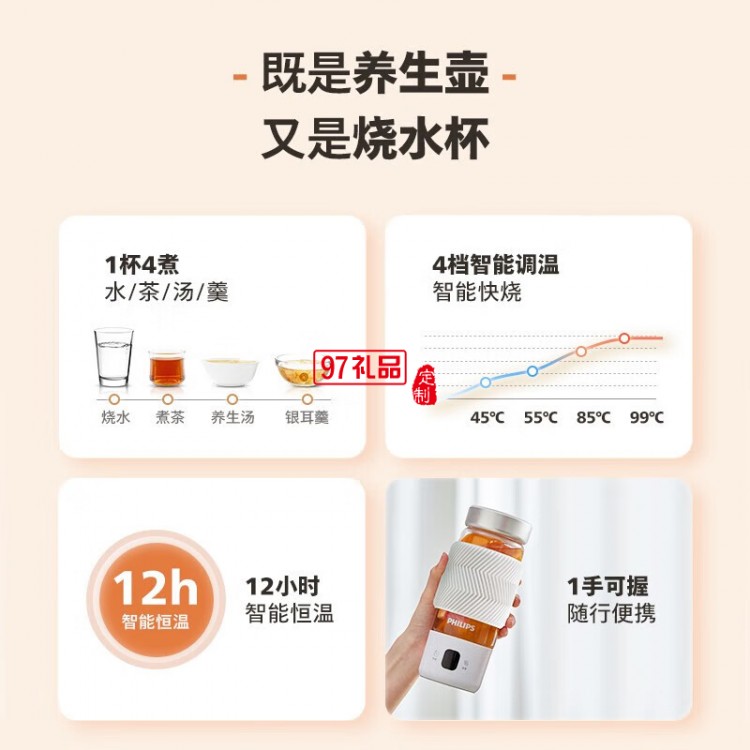 飛利浦燒水杯1杯4煮 · 調溫 · 恒溫 能燒水熬煮的隨行輕養杯