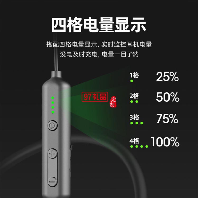 雙電池掛脖5.0藍牙耳機  立體音質帶電量顯示