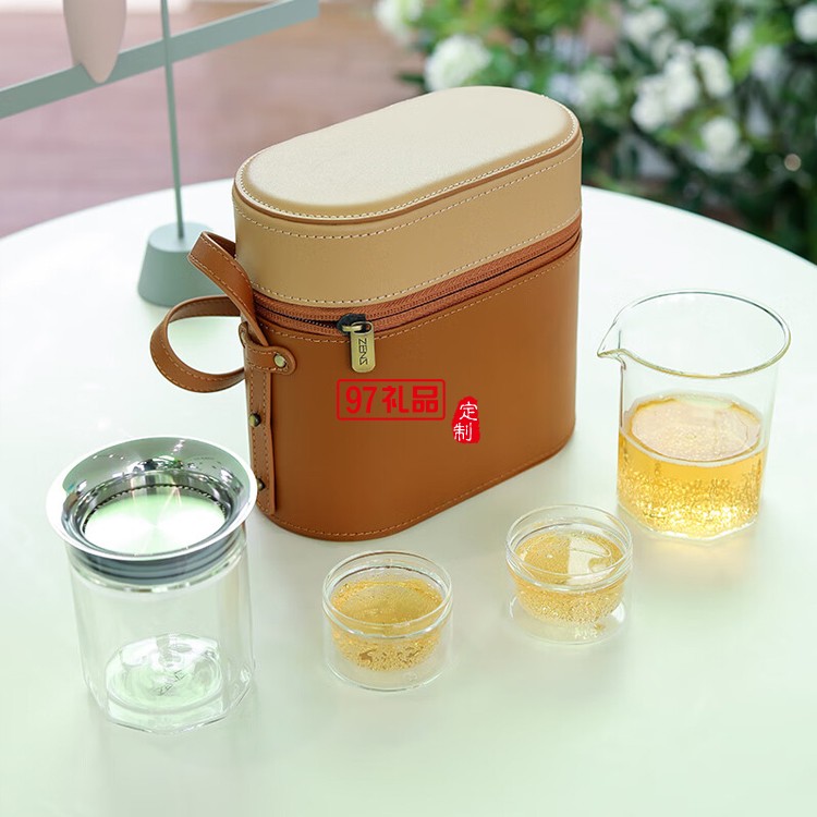哲品ZENS悅游帶包便攜茶具套裝現代茶具耐熱玻璃茶杯公道杯一壺兩杯