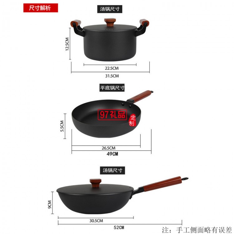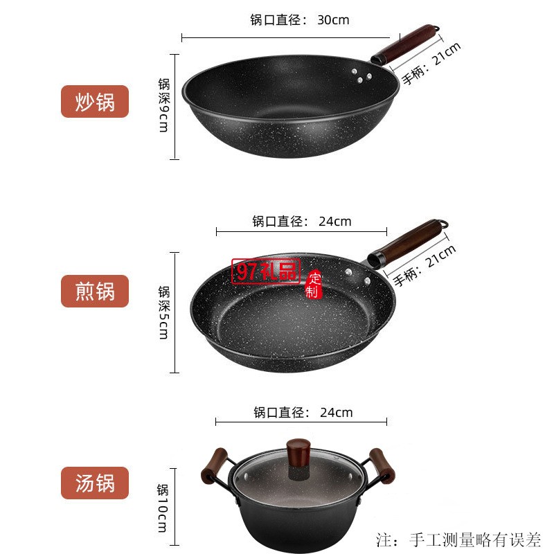 不粘鍋具套裝全套 廚房平底鍋炒鍋組合燃氣通用 家用三件套無煙鍋
