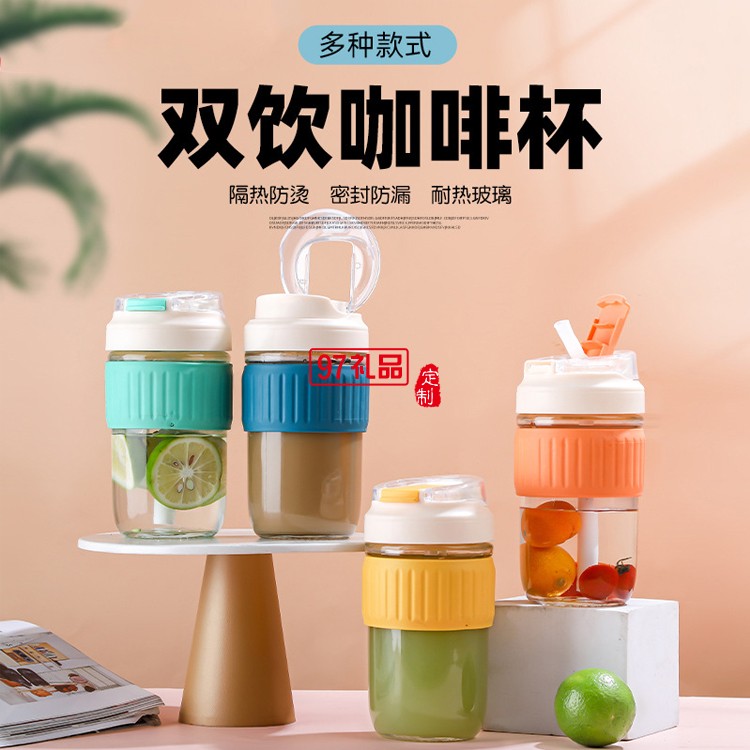 玻璃雙飲杯ins風(fēng)一杯雙口泡茶杯子家用咖啡杯便攜式水杯