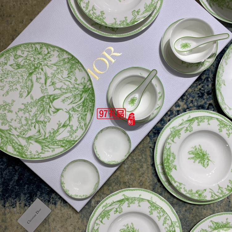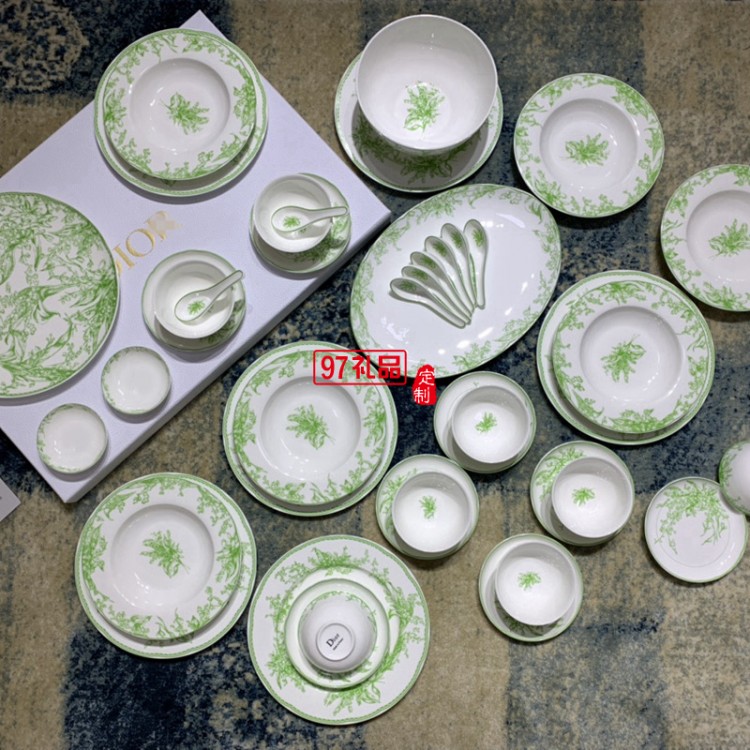 Do鈴蘭系列41頭餐具套裝禮盒DIO MAISON高級骨瓷綠色喬遷結婚