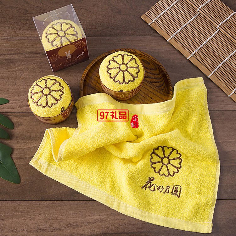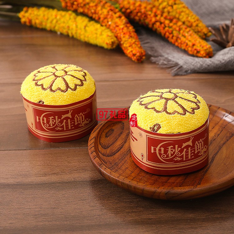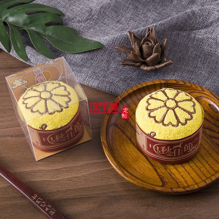 中秋節(jié)禮品蛋糕造型廣告創(chuàng)意純棉盒裝月餅毛巾 可定制logo