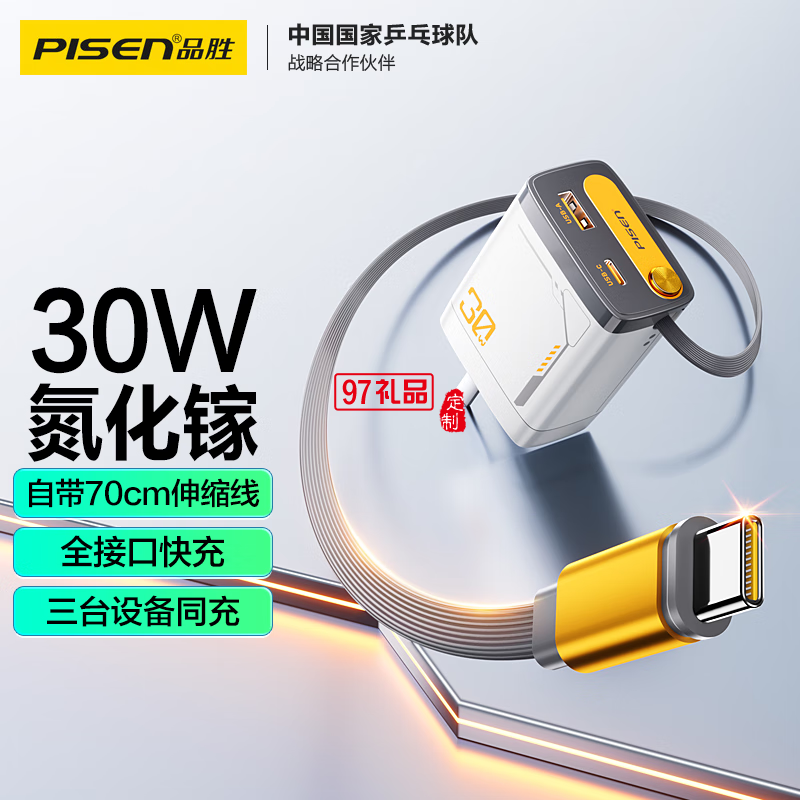 產品名稱:品勝-30W氮化鎵伸縮自帶線充電器(TP-C82)